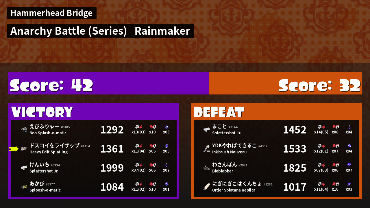 Name | Weapon | Inked | ![]() |