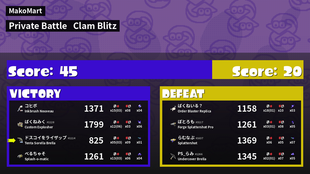 | Medals | #1 Clam Carrier #2 Splat Assister |