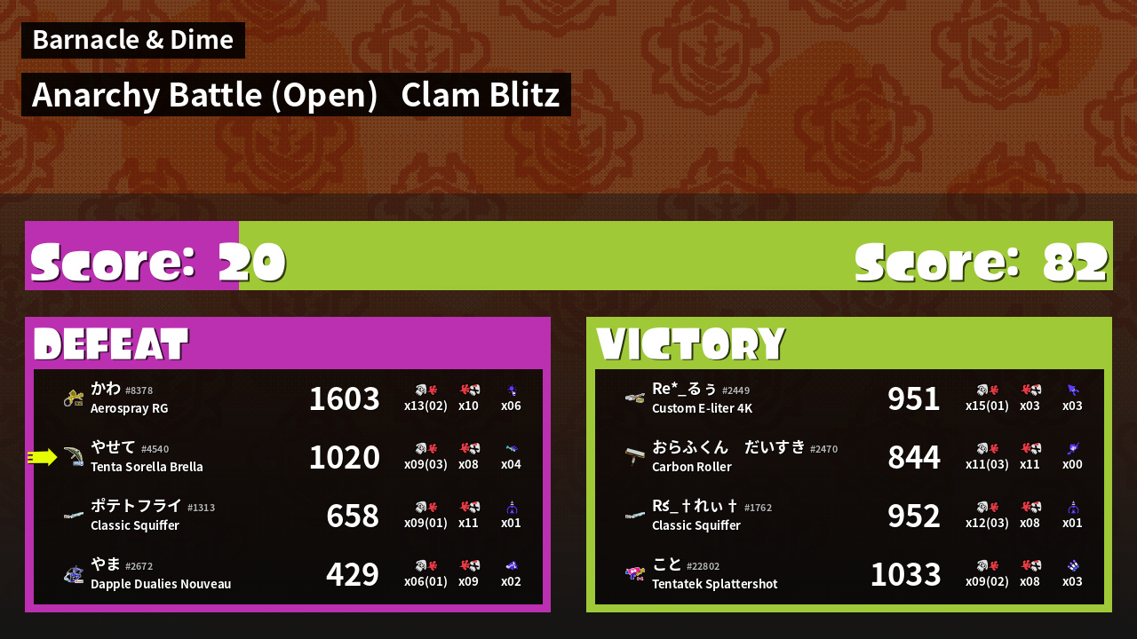 | Mode | Clam Blitz - Anarchy Battle (Open) |