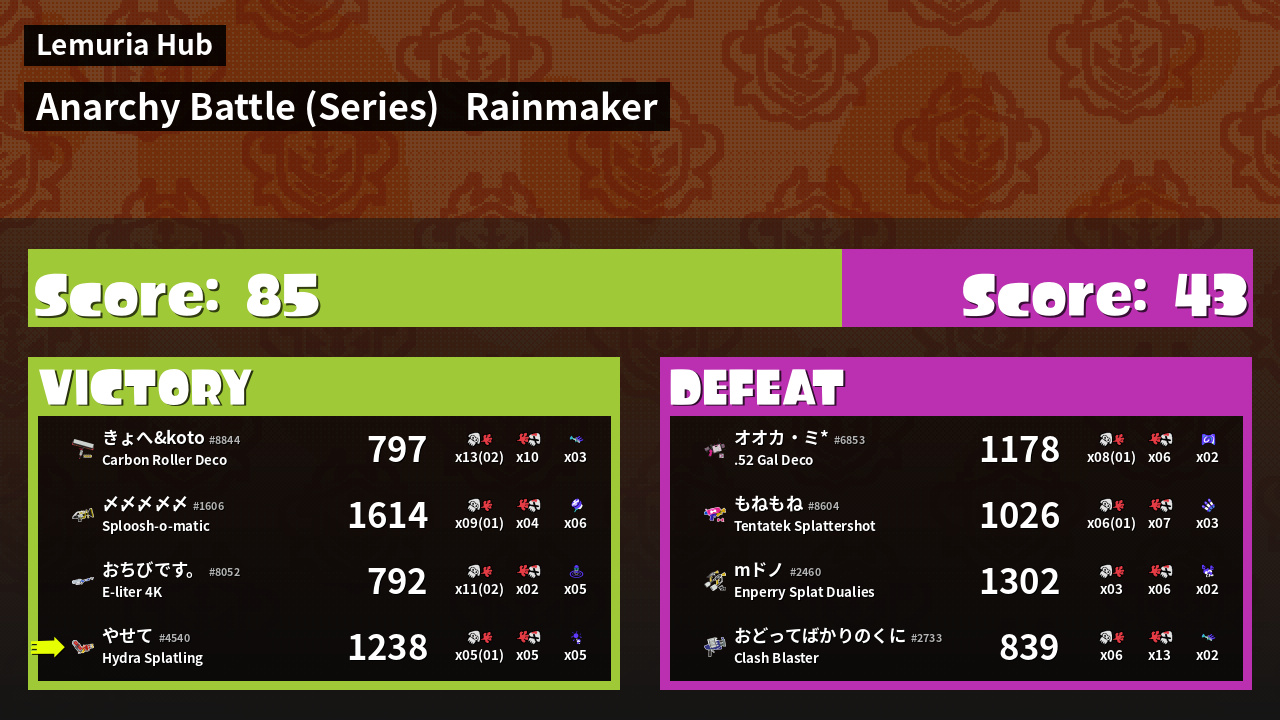 | Mode | Rainmaker - Anarchy Battle (Series) |