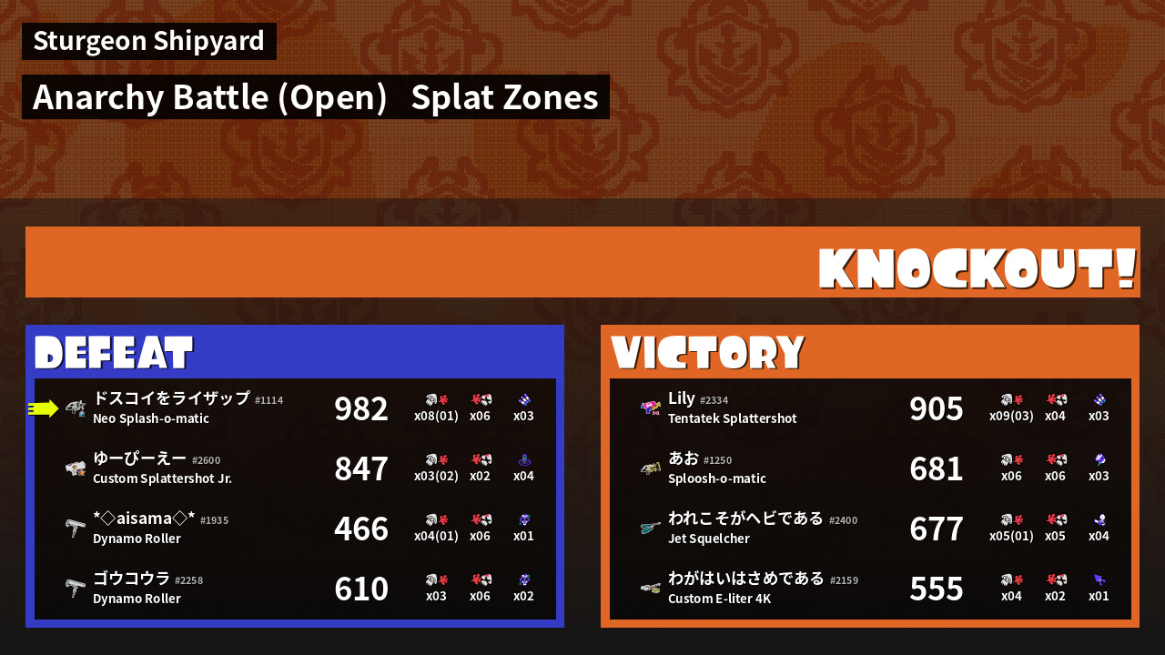 | Mode | Splat Zones - Anarchy Battle (Open) |