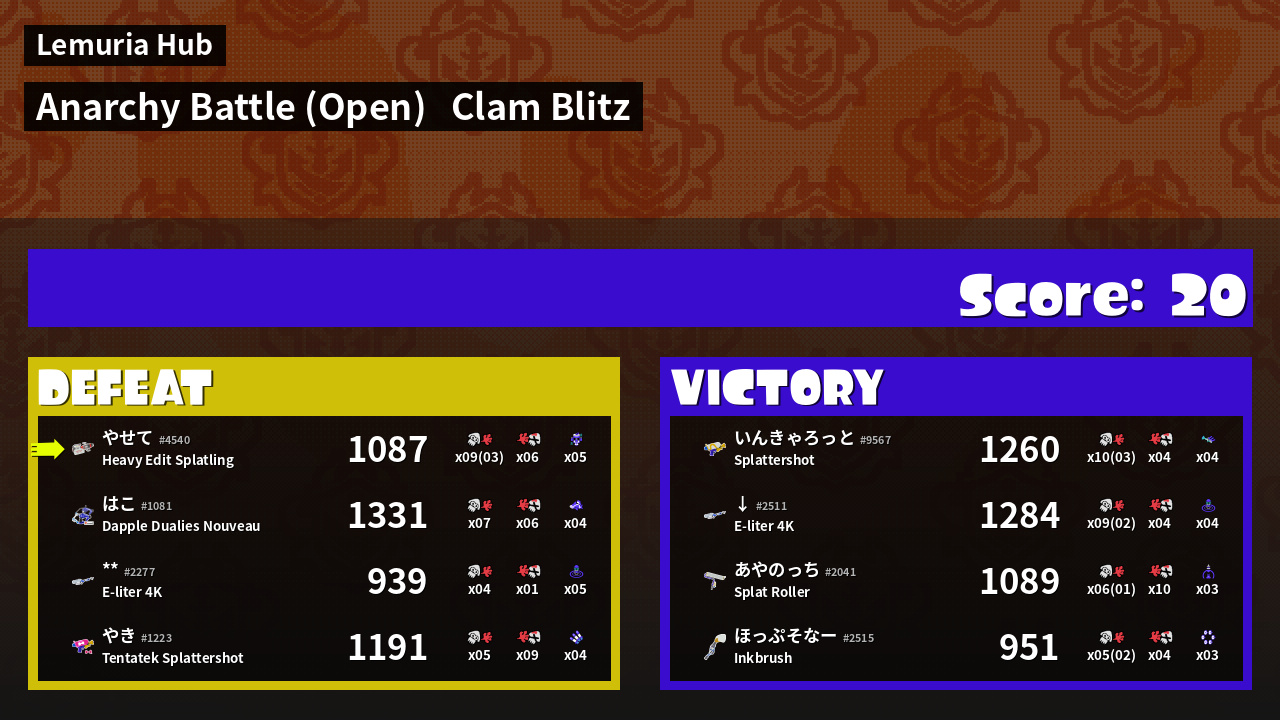 | Mode | Clam Blitz - Anarchy Battle (Open) |