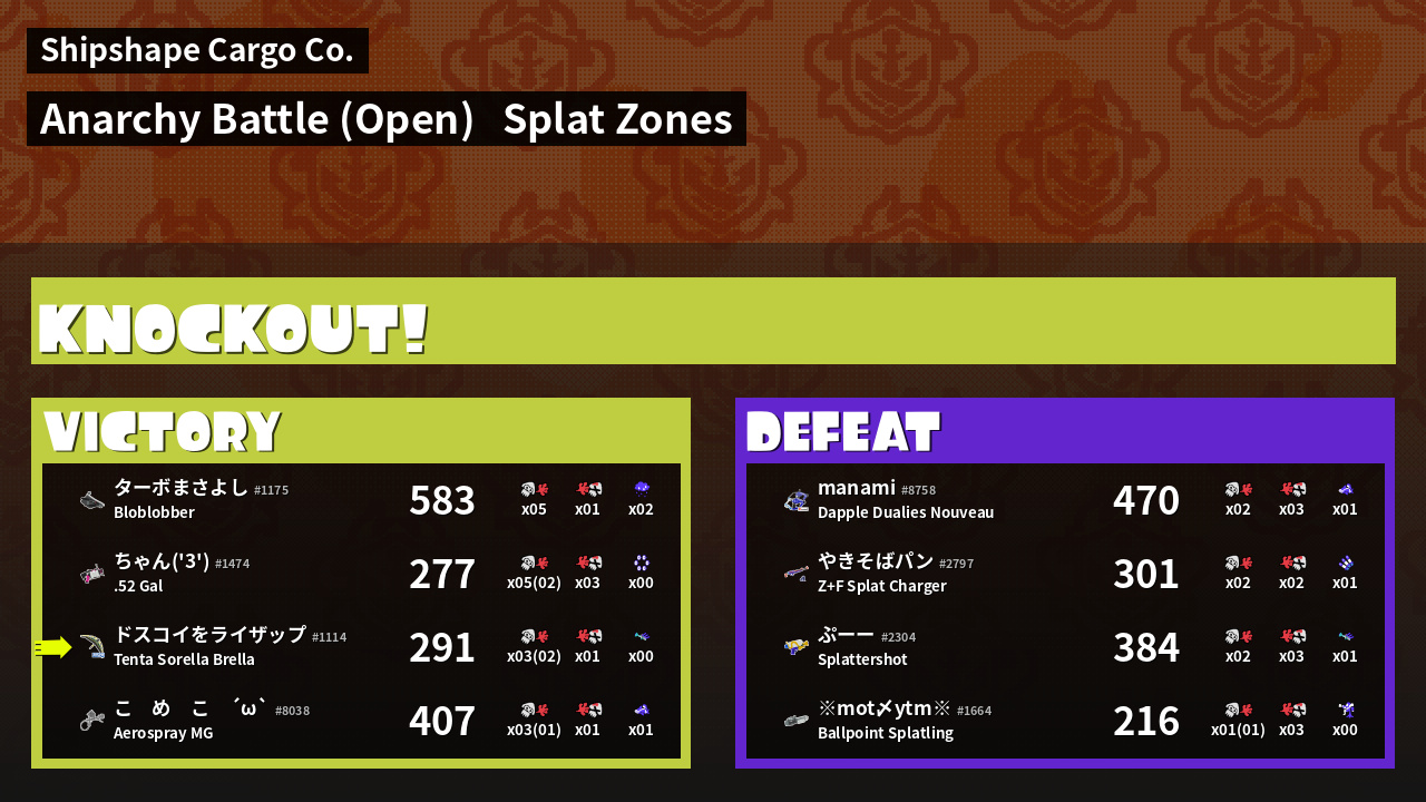 | Mode | Splat Zones - Anarchy Battle (Open) |