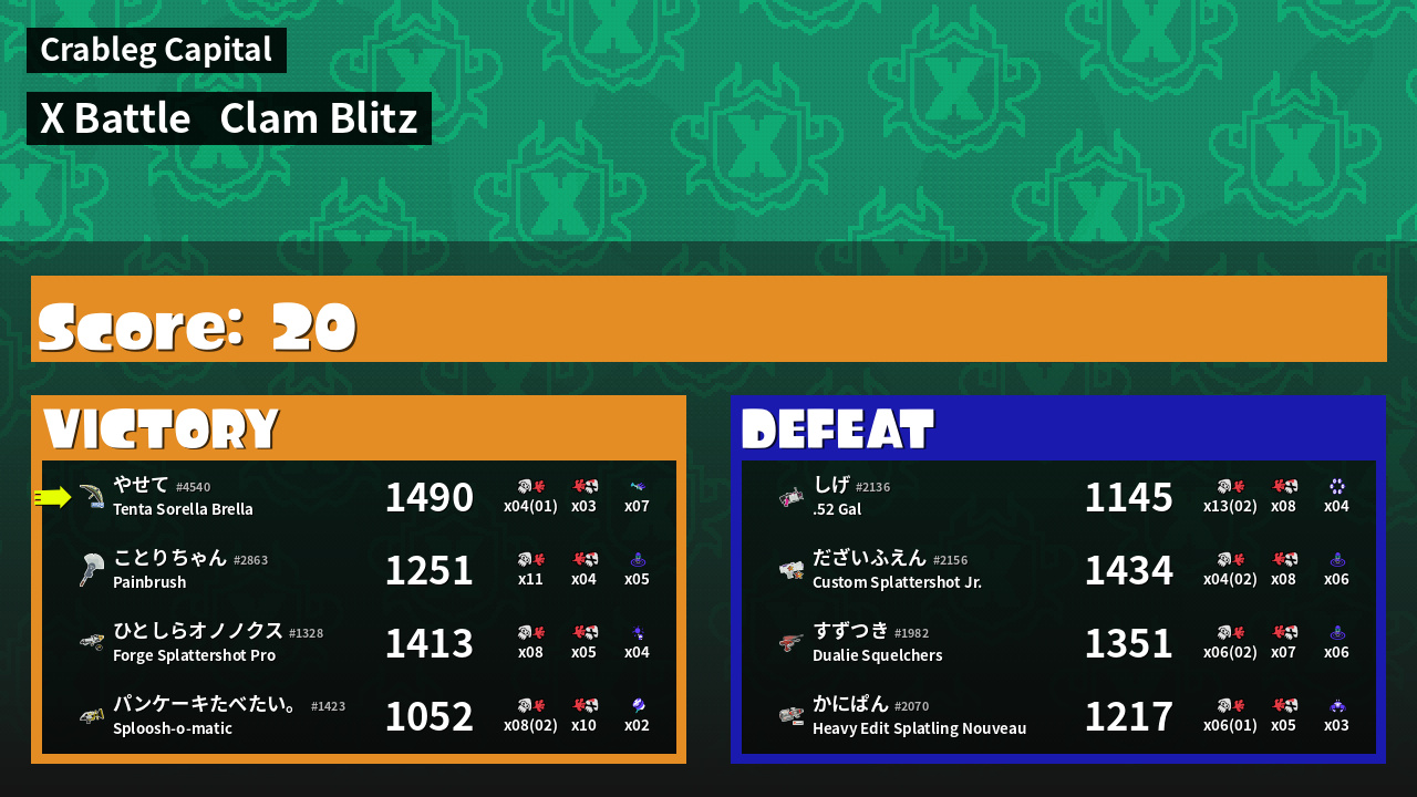 | Mode | Clam Blitz - X Battle |