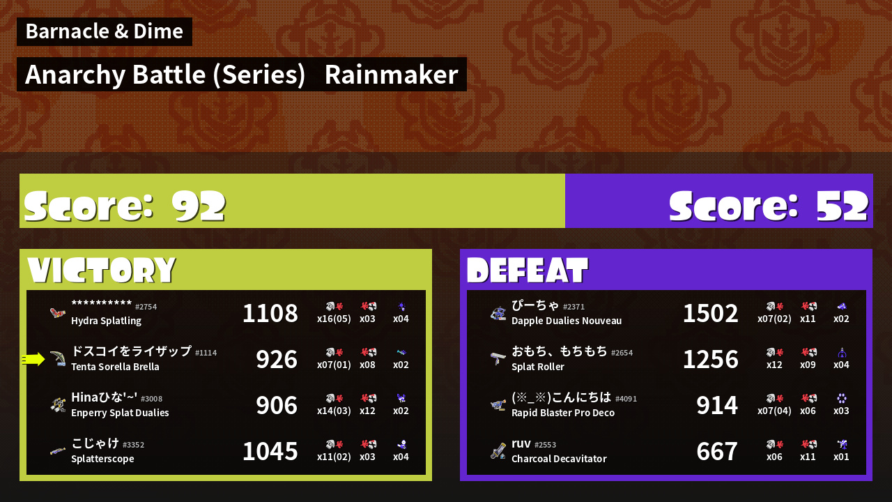 Name | Weapon | Inked | ![]() |