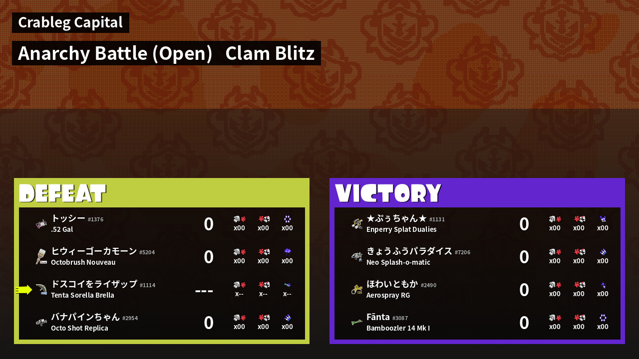 | Mode | Clam Blitz - Anarchy Battle (Open) |