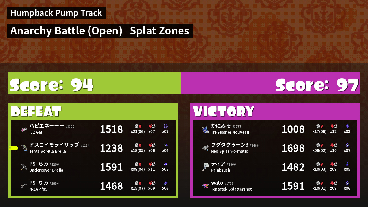 | Mode | Splat Zones - Anarchy Battle (Open) |