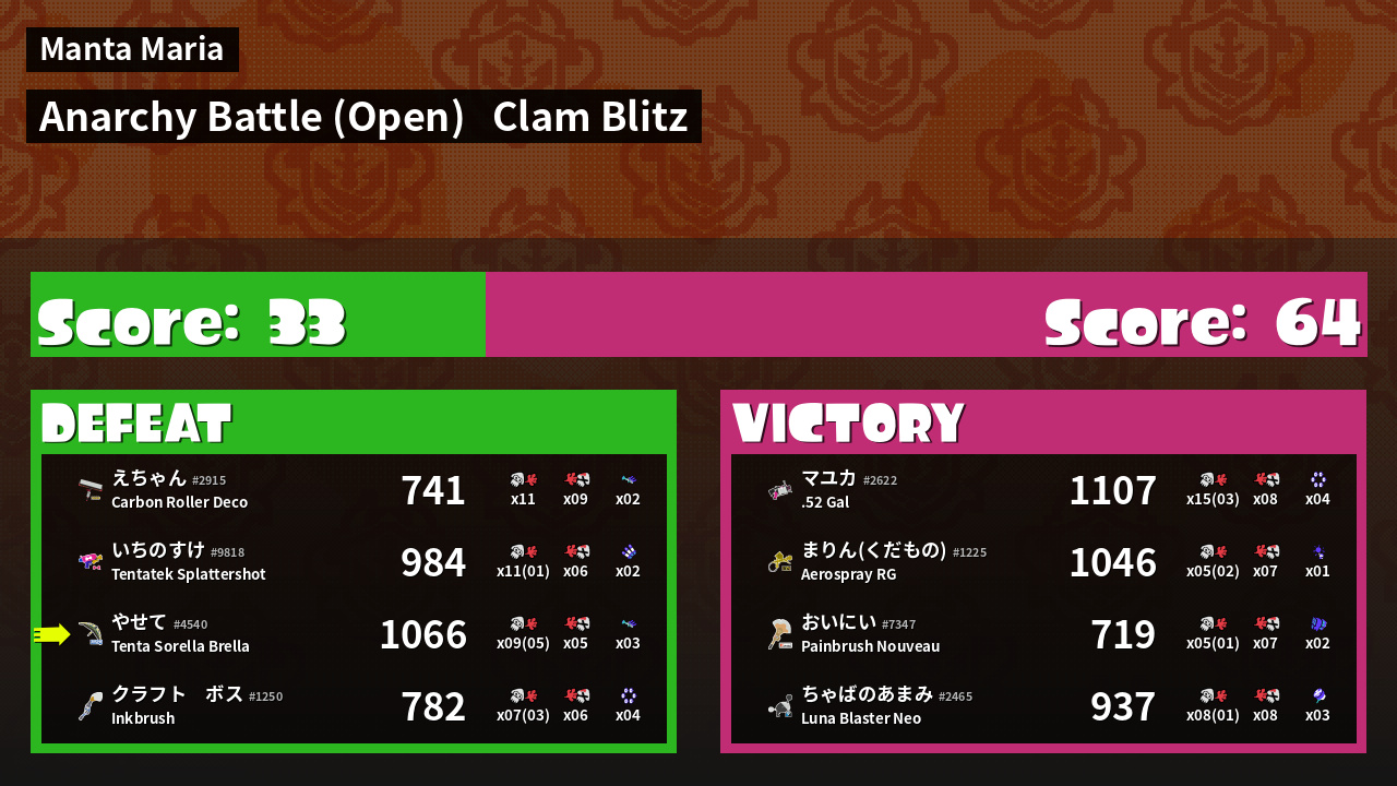 | Mode | Clam Blitz - Anarchy Battle (Open) |