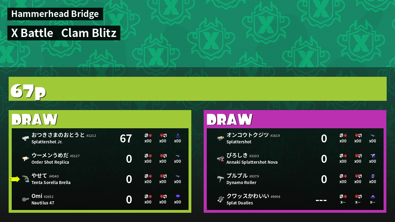 | Mode | Clam Blitz - X Battle |