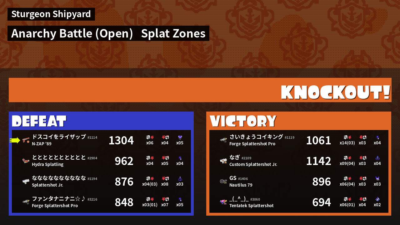 | Mode | Splat Zones - Anarchy Battle (Open) |