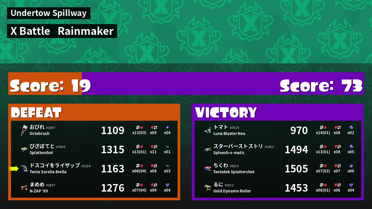 | Medals | #1 Popular Target #1 Splat Assister #1 Trizooka User |