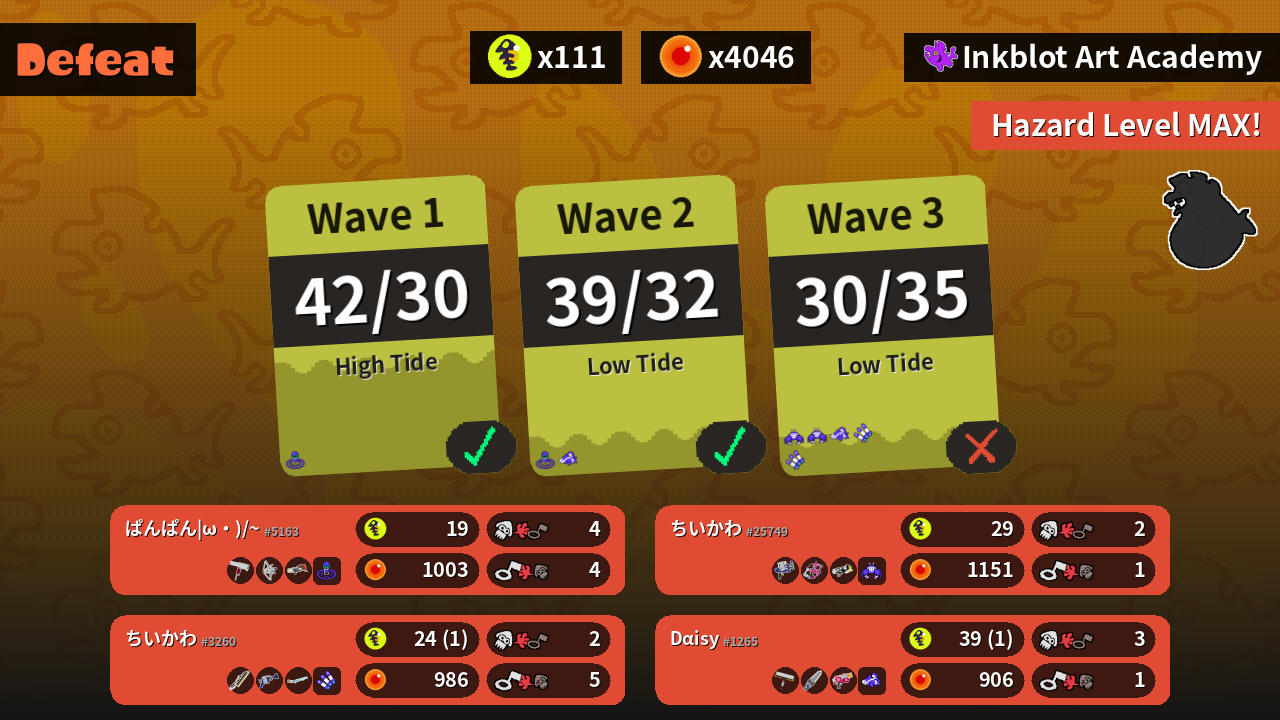 | Boss Salmonid | 18 | 18 | 28 | 21 |