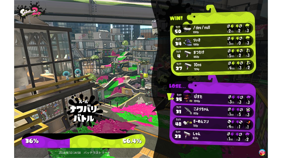 | Mode | Turf War - Regular Battle | ||||||||||||||||||||||||||||||||||||||||