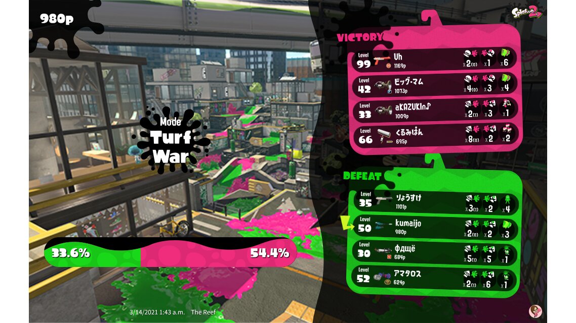 | Mode | Turf War - Regular Battle | |||||||||||||||||||||||||||||||||||||