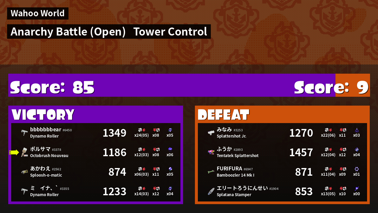 | Mode | Tower Control - Anarchy Battle (Open) | ||