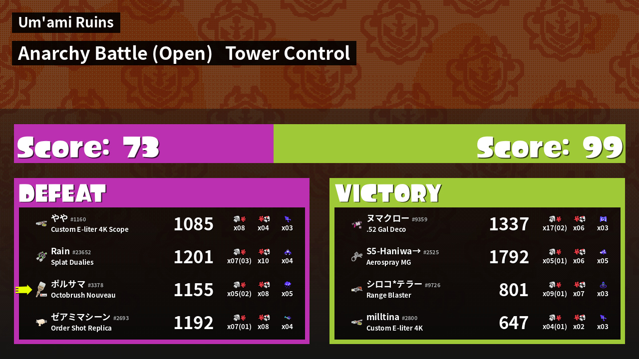 | Mode | Tower Control - Anarchy Battle (Open) | ||