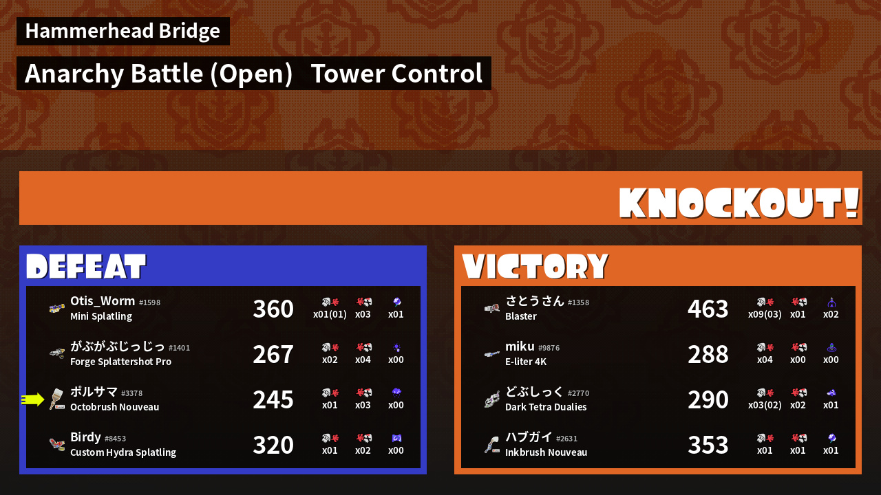 | Mode | Tower Control - Anarchy Battle (Open) | ||
