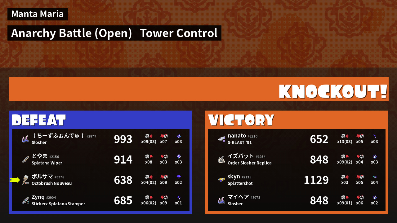 | Mode | Tower Control - Anarchy Battle (Open) | ||