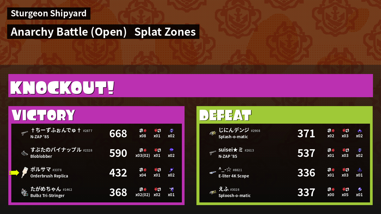 | Mode | Splat Zones - Anarchy Battle (Open) | ||