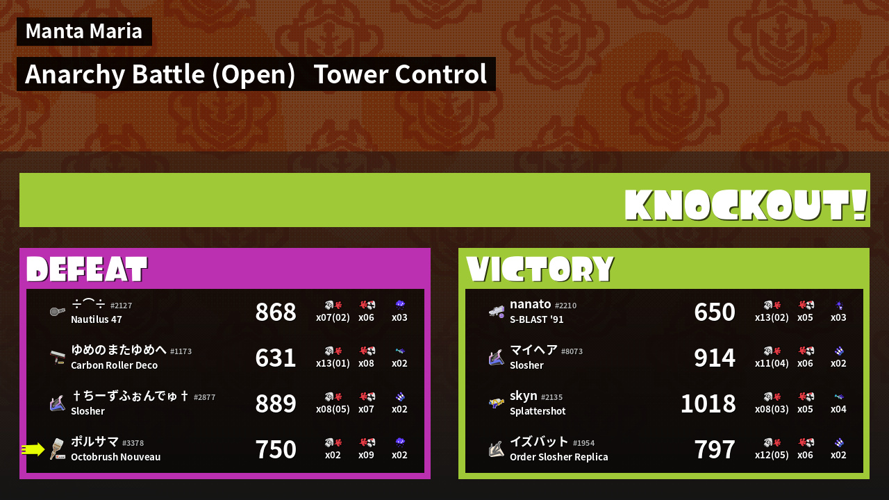 | Mode | Tower Control - Anarchy Battle (Open) | ||
