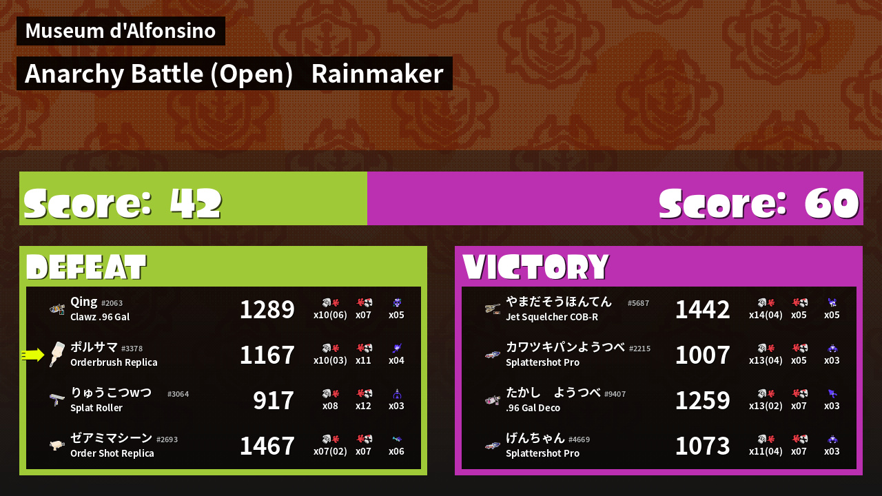 Name | Weapon | Inked | ![]() |