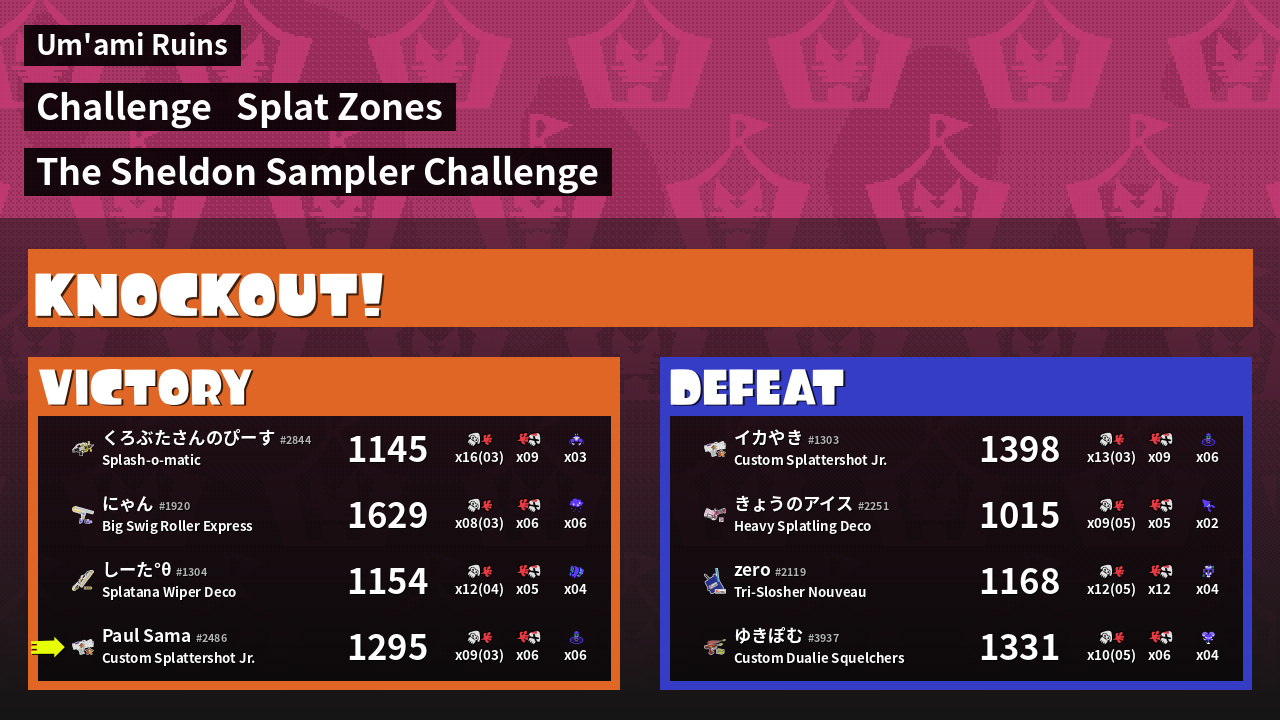 | Medals | #1 Splat Zone Hero #1 Ink Consumer First Splat! | ||