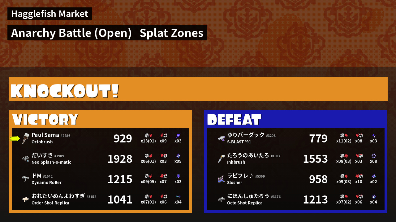 | Mode | Splat Zones - Anarchy Battle (Open) | ||