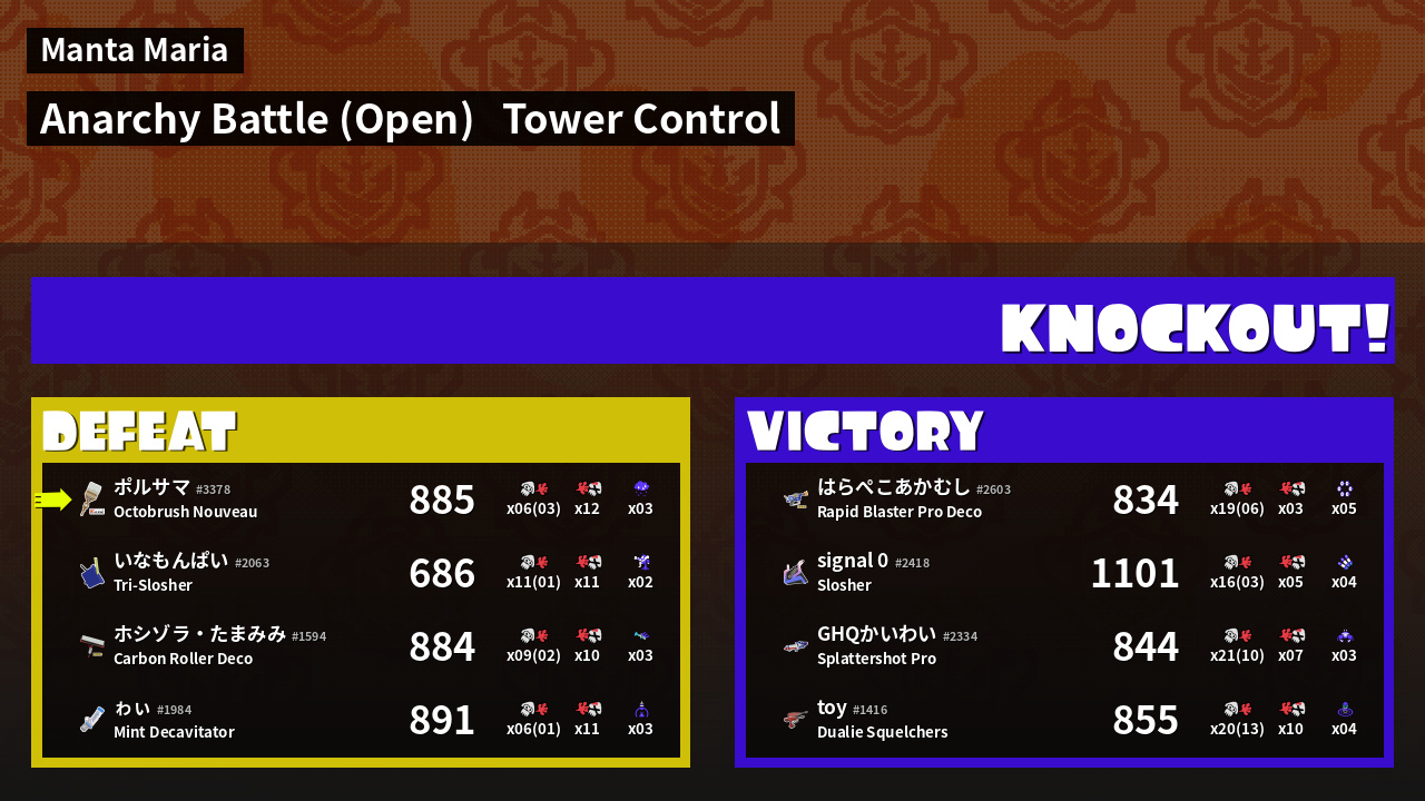 | Mode | Tower Control - Anarchy Battle (Open) | ||