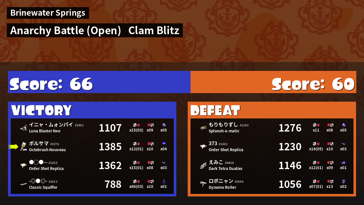 | Mode | Clam Blitz - Anarchy Battle (Open) | ||