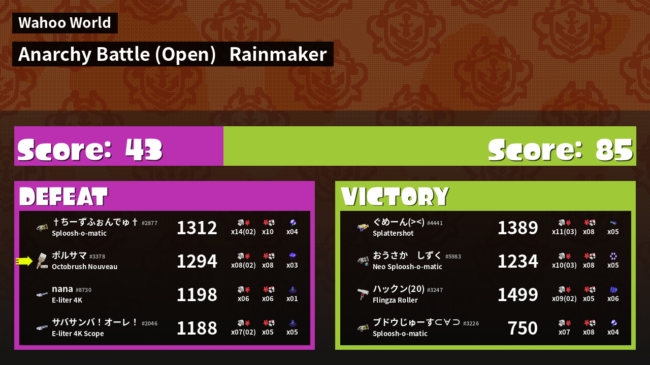 | Mode | Rainmaker - Anarchy Battle (Open) | ||