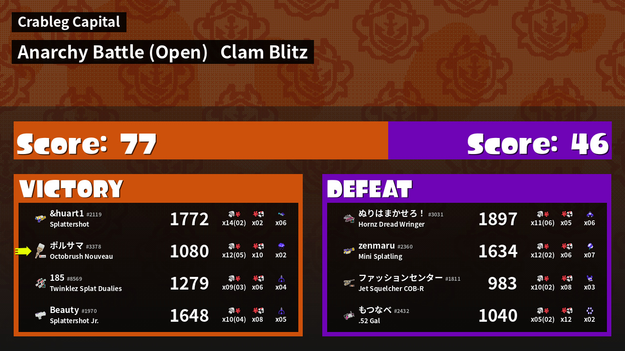 | Mode | Clam Blitz - Anarchy Battle (Open) | ||