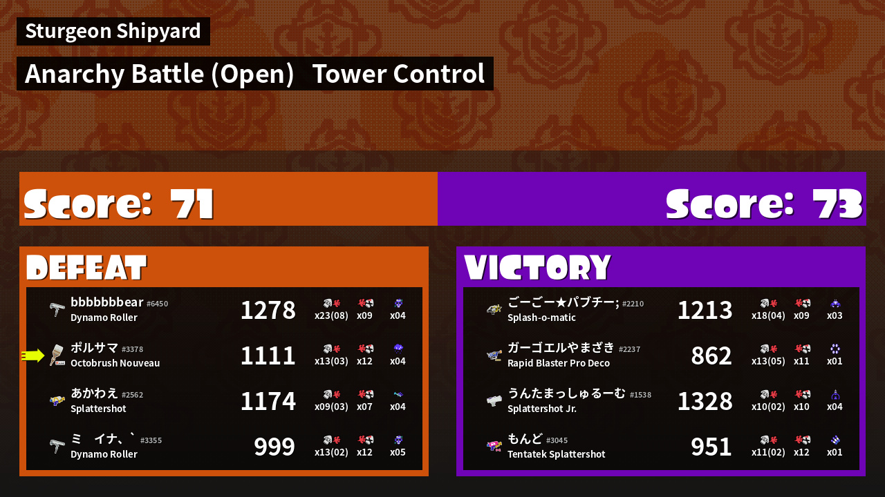 | Mode | Tower Control - Anarchy Battle (Open) | ||