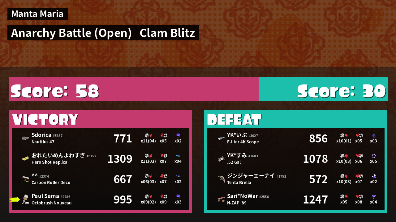 | Mode | Clam Blitz - Anarchy Battle (Open) | ||