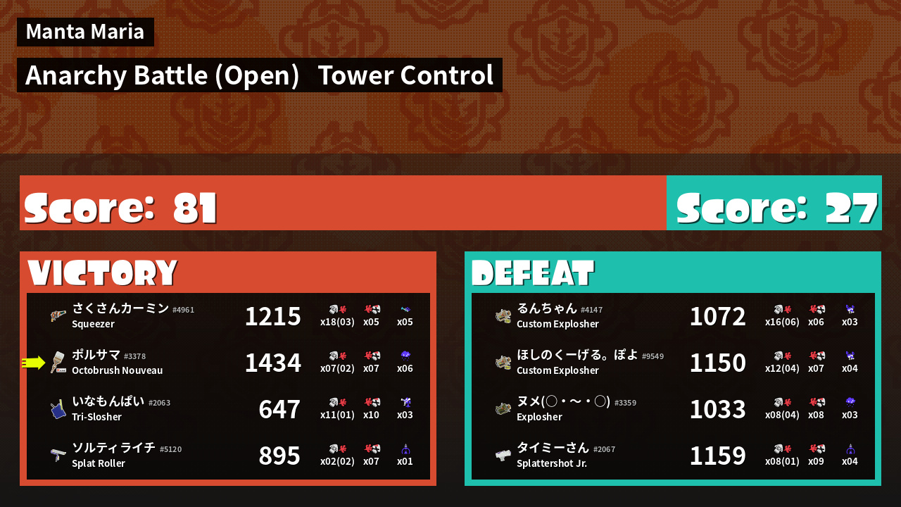 | Mode | Tower Control - Anarchy Battle (Open) | ||