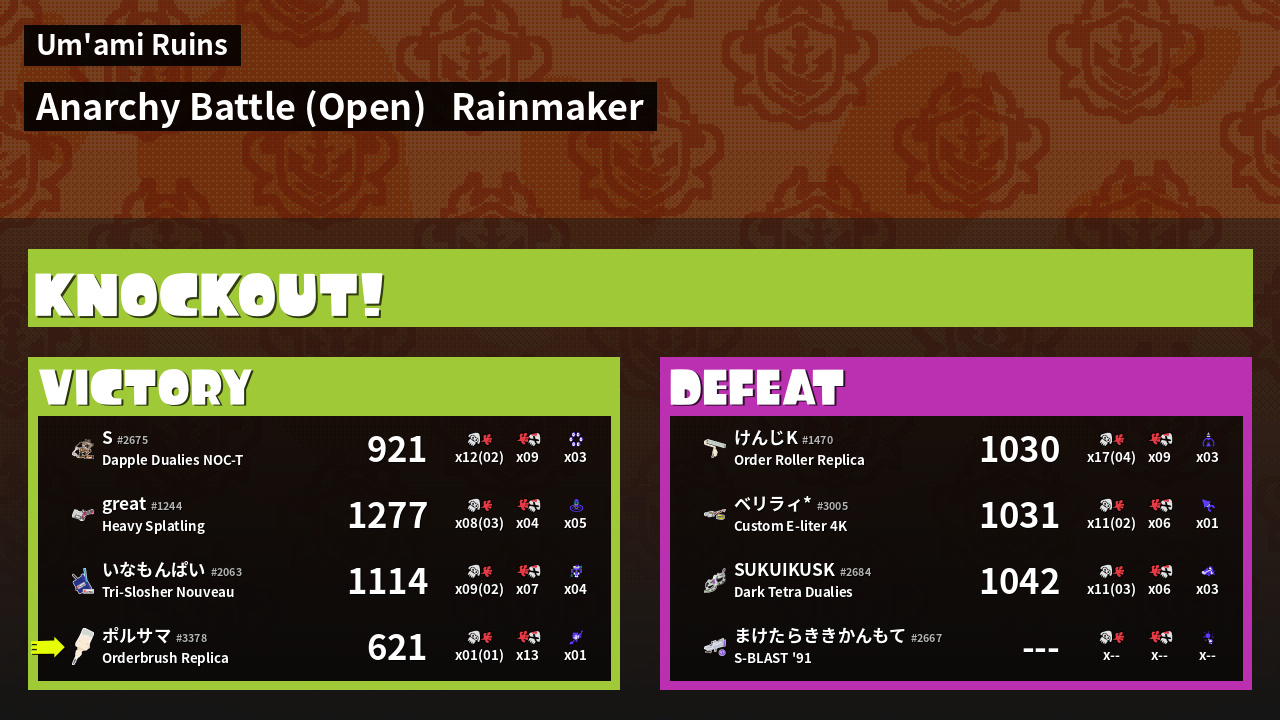 | Mode | Rainmaker - Anarchy Battle (Open) | ||