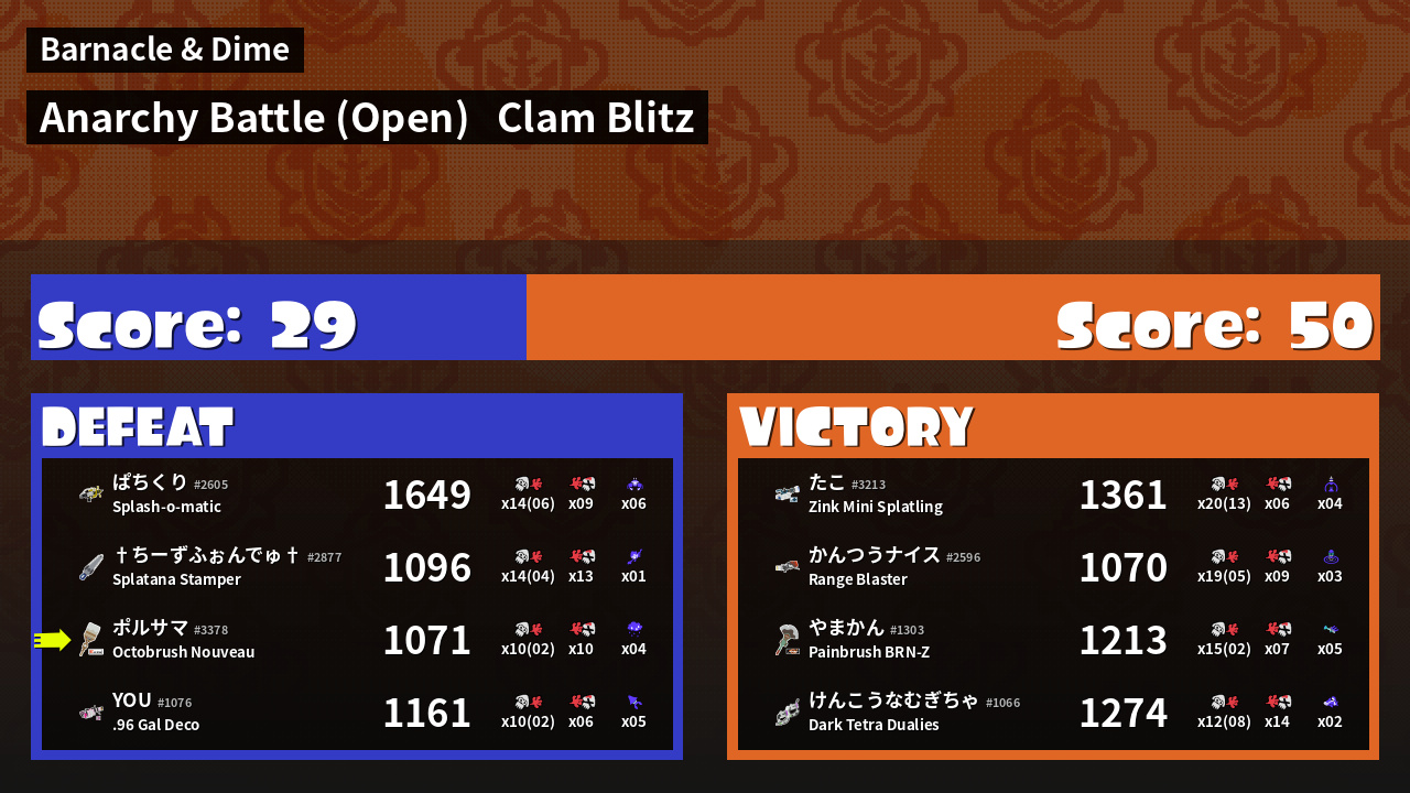 | Mode | Clam Blitz - Anarchy Battle (Open) | ||