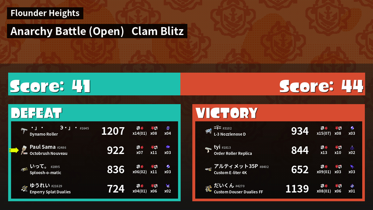 | Mode | Clam Blitz - Anarchy Battle (Open) | ||