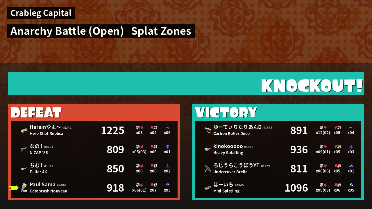| Mode | Splat Zones - Anarchy Battle (Open) | ||