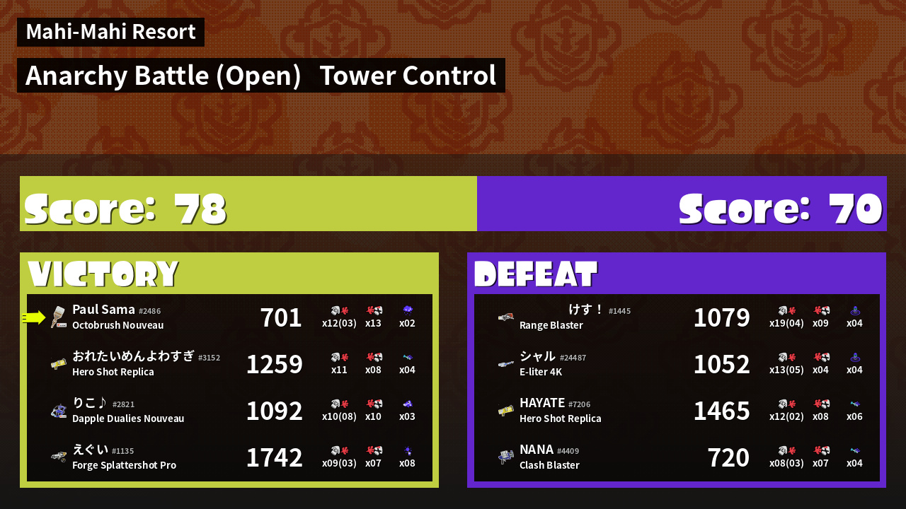 | Mode | Tower Control - Anarchy Battle (Open) | ||