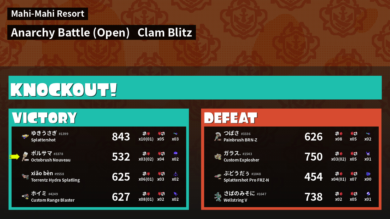 | Mode | Clam Blitz - Anarchy Battle (Open) | ||