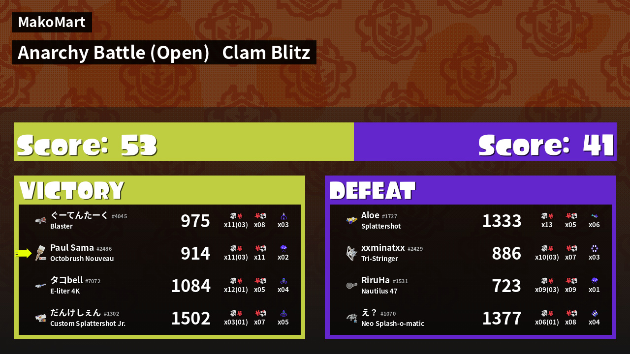 | Mode | Clam Blitz - Anarchy Battle (Open) | ||