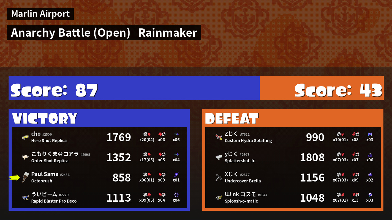 | Mode | Rainmaker - Anarchy Battle (Open) | ||