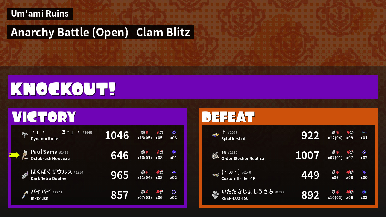 | Mode | Clam Blitz - Anarchy Battle (Open) | ||
