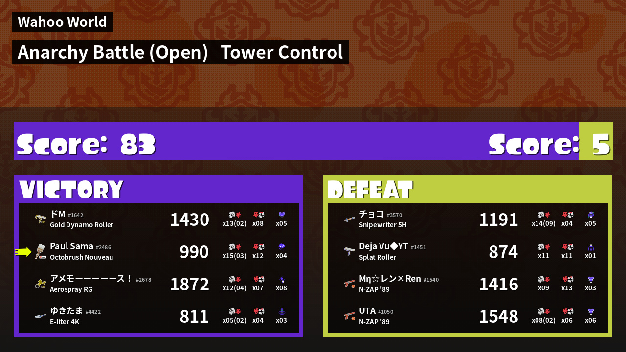 | Mode | Tower Control - Anarchy Battle (Open) | ||
