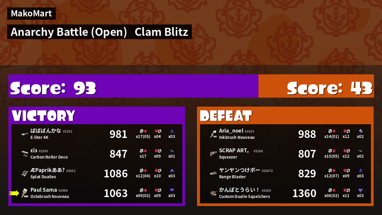 | Mode | Clam Blitz - Anarchy Battle (Open) | ||