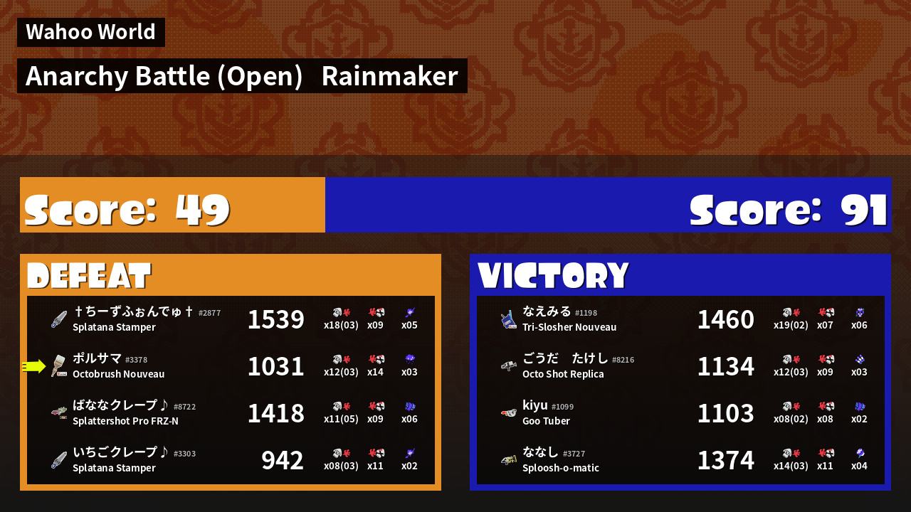 | Mode | Rainmaker - Anarchy Battle (Open) | ||