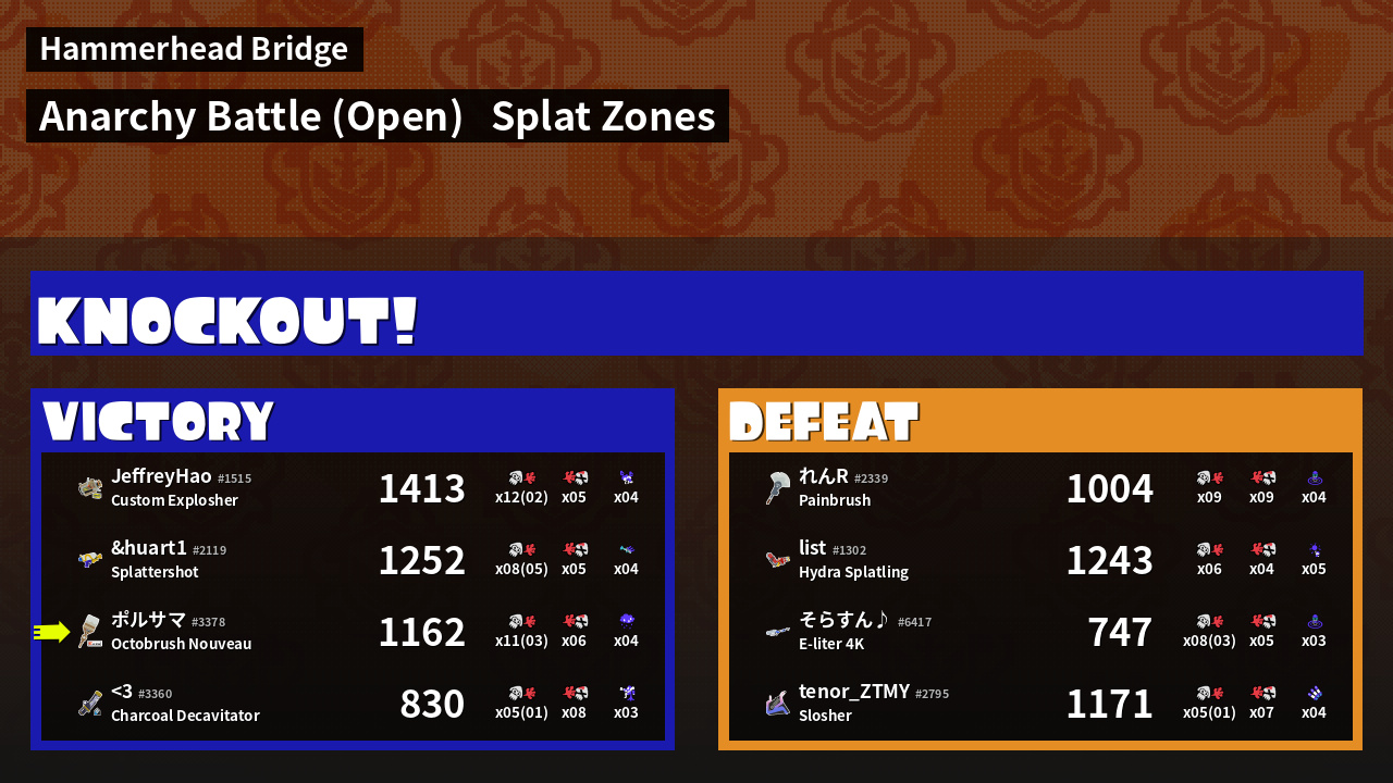 | Mode | Splat Zones - Anarchy Battle (Open) | ||