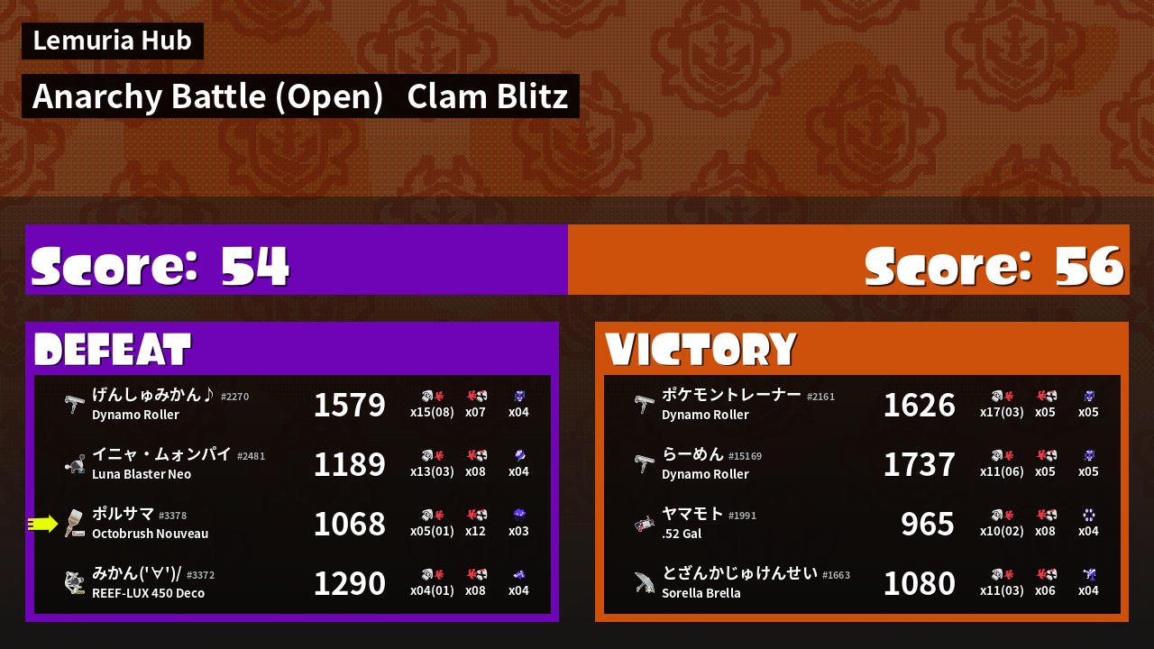 | Mode | Clam Blitz - Anarchy Battle (Open) | ||