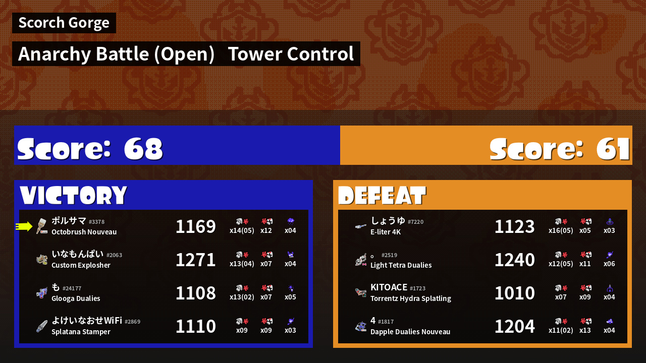 | Mode | Tower Control - Anarchy Battle (Open) | ||