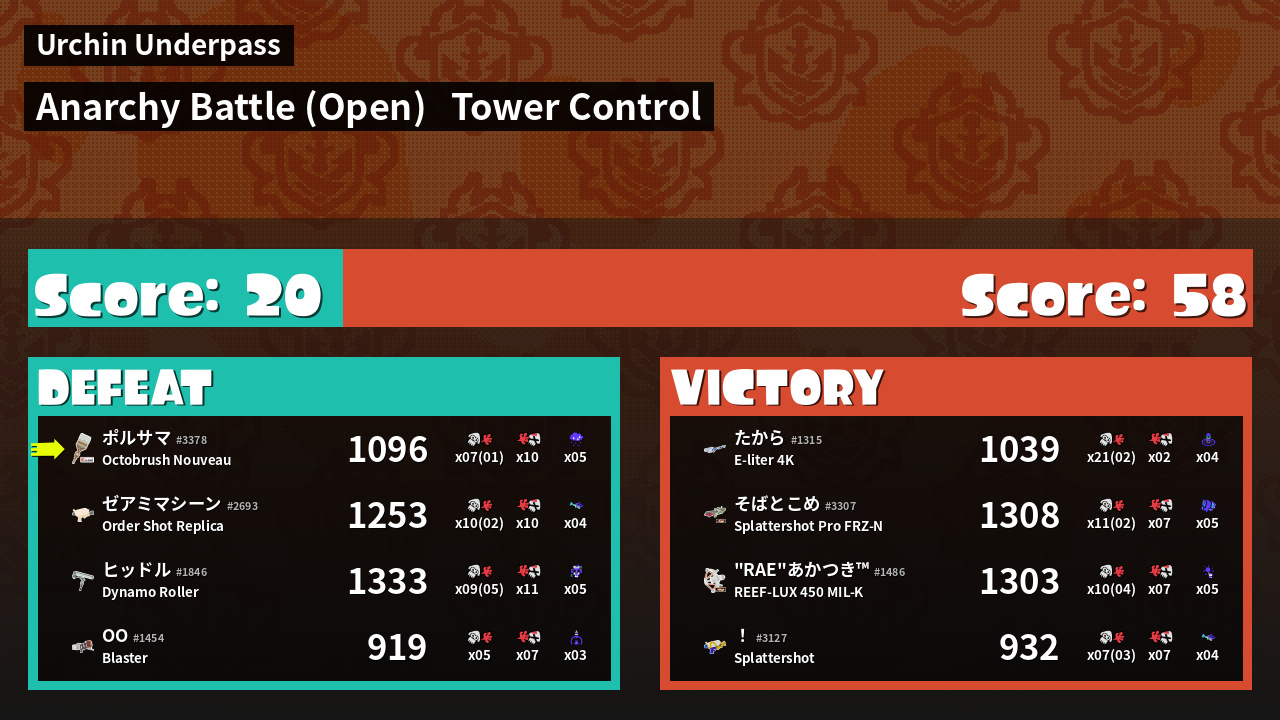 | Mode | Tower Control - Anarchy Battle (Open) | ||